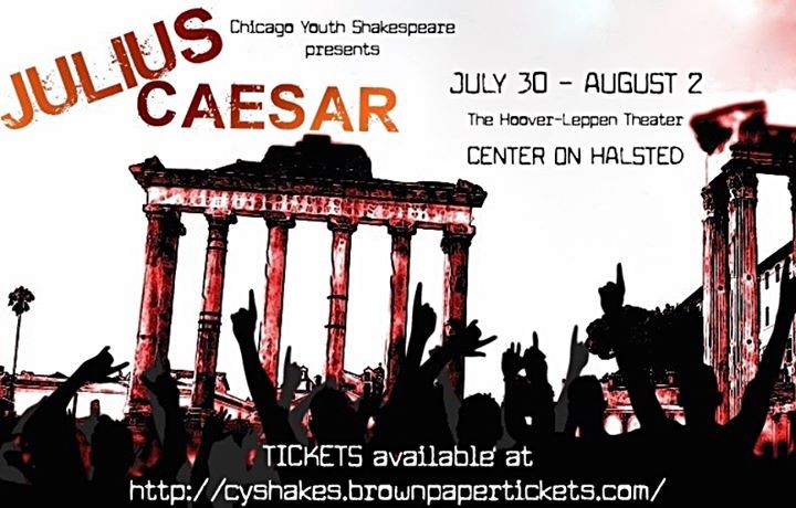 This culminating production of Chicago Youth Shakespeare's six-week summer program brings together high school students from communities throughout the Chicago area, including Hyde Park, Bronzeville, Ukrainian village, Edgewater, Ashburn, Ravenswood, Austin, Oak Park, River Forest, and Naperville.  Julius Caesar examines the private-self, the public-self, and celebrity. In the play, the title character returns home to Rome a war hero with his popularity at its peak; but some of his friends and fellow senators fear he has too much power. This fear sets into motion a series of events that will change the course of human history. All performances will take place in the Hoover-Leppen Theater at Center on Halsted 3656 N Halsted St. Chicago, IL 60613 ------------------------------------------------------------------- PREVEW PERFORMANCE--Thursday, July 30 at 7:30pm -Free to high school students! -Adults: $10 suggested donation OPENING NIGHT--Friday, July 31 at 7:30pm -General Admission: $15 SHOW #2--Saturday, August 1 at 3:00pm -General Admission: $15 Tickets Available at: http://cyshakes.brownpapertickets.com/