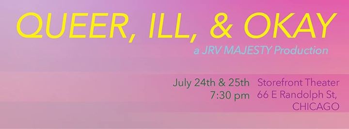 QUEER, ILL, & OKAY is an annual multidisciplinary performance series exploring, challenging, and reinventing narratives about the lives of queer individuals and their relationships to HIV and other forms of mental and chronic illness. In 2013 Joseph Varisco, Creative Director of JRV MAJESTY Productions began the series after being diagnosed as HIV+. He realized that we all know someone whose life has been impacted by illness, and turned to his artistic communities to further understand the relationship between queerness, the body, and chronic illness. Featuring: Oli Rodriguez Amir Rabiyah Joan Giroux Sky Cubacub Allie Shyer Scott Artley Ireashia Monét Donnell Williams QUEER, ILL, & OKAY will appear at the DCASE Storefront Theater** (66 E Randolph St, Chicago, IL 60601) in partnership with the City of Chicago's Department of Cultural Affairs and Special Events (DCASE), the ADA's 25th Anniversary, and The Inconvenience. **ADA Accessible space! QIO first appeared for Poonie's Cabaret at Links Hall in October 2013 and at DfbrL8r Performing Arts Gallery in July 2014 to sold out houses. Educational workshops and community conversations were added in partnership with Howard Brown Health Center to provide information and resources about living with chronic illness. Since first appearing QIO has reached over 1500 artists and audience members. In 2015 QIO was awarded grants from Visual AIDS and through fiscal sponsorship with Links Hall, the AIDS Healthcare Foundation to introduce a third year of new original work. CANNOT MAKE THE SHOW! SUPPORT VIA TAX DEDUCTIBLE DONATION: http://bit.ly/1SyZOCf