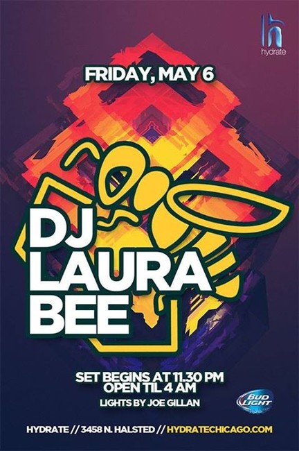 Resident DJ Laura B takes over the Hydrate DJ booth. No Cover until Midnight. Packed dance floors and long lines prevail at clubs when Laura Bee is spinning. Her energetic sound has had the crowds moving in the clubs since 1982 in Chicago. This has kept Laura Bee a buzz and moved the "Bee" into Queen Bee status. Her experience has kept her working hard hailing over 10 years of residency at several clubs including Excalibur/Vision Chicago's largest Nightclub and Hydrate Nightclub Chicago's premier gay club. Long-term residencies also include Manhole and Hunters. Along the way Laura reigned in Chicago with several LIVE mix shows from clubs airing on Q101 Alternative Beats and Energy 97.25. Prerecorded mix sets were heard on B96 and several Internet radio shows. Inside the Beehive a new style of syndicated mix show is currently in development for her. No Cover till midnight Lights by Joe Gillan