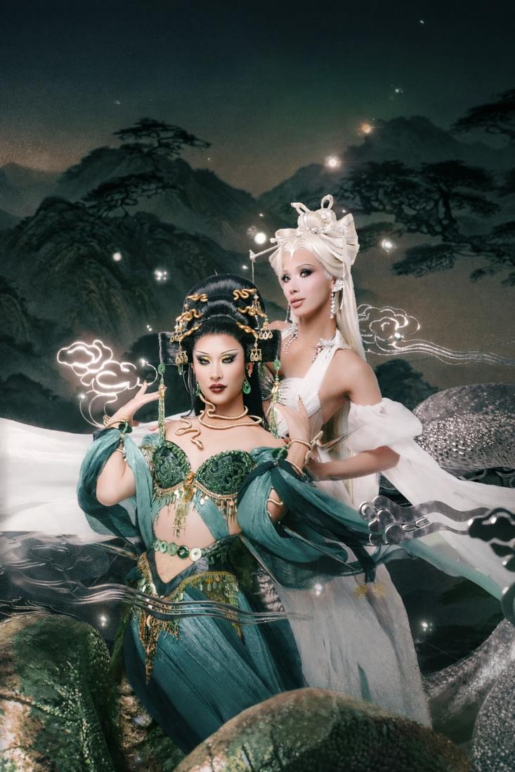 This tour is focused on traditional Asian folklore and is based on the Chinese legend of Bai Suzhen (White Snake) and Xiao Qing (Green Snake). Our tour is based on two snake sisters and is inspired by that, but we are not conveying the same story. We are giving it a drag, gay twist.