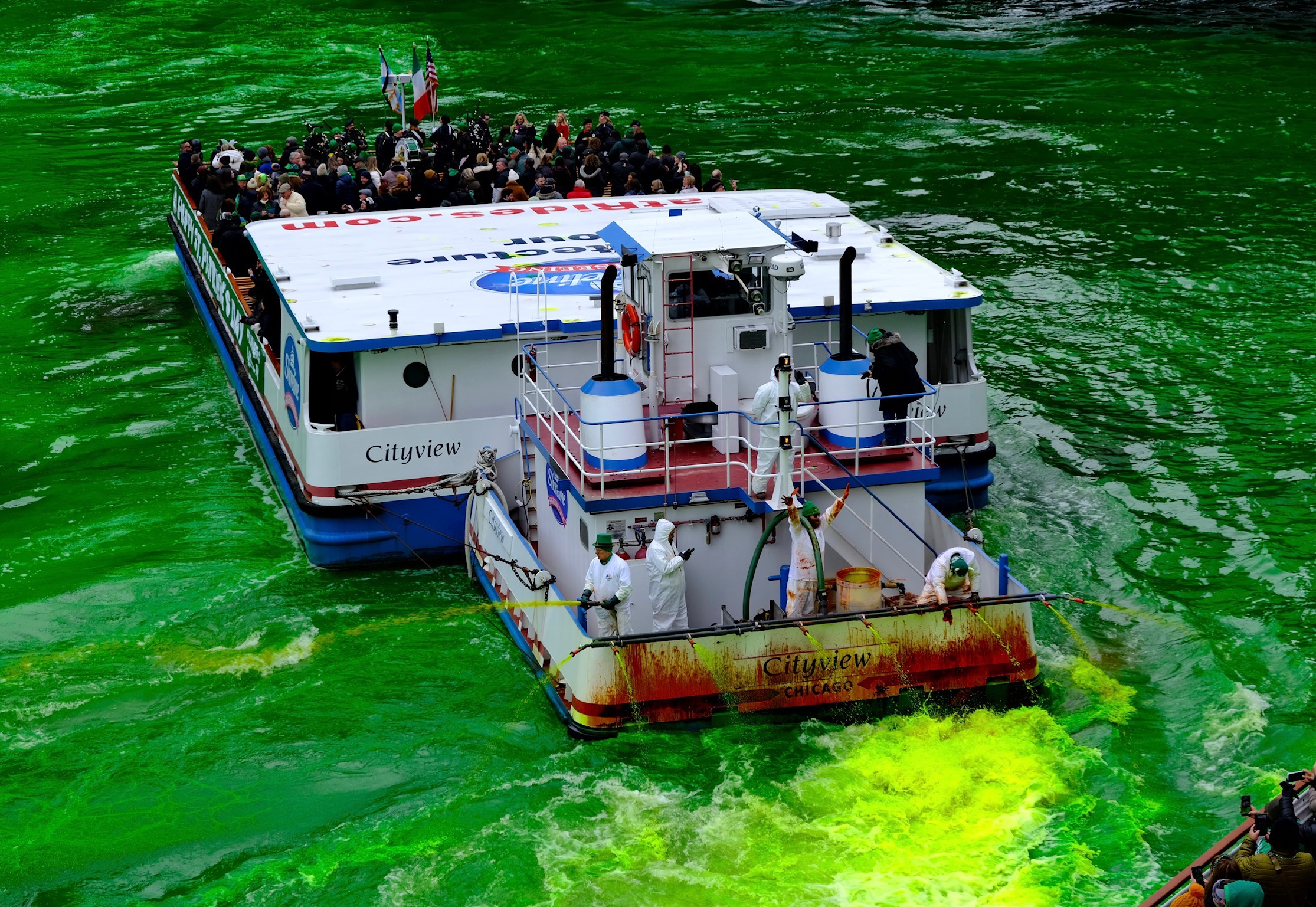 According to a blog post from Choose Chicago, the Chicago River dyeing, which is typically held the Saturday before St. Patrick's Day, along with the city's St. Patrick's Day Parade, dates back more than half a century.