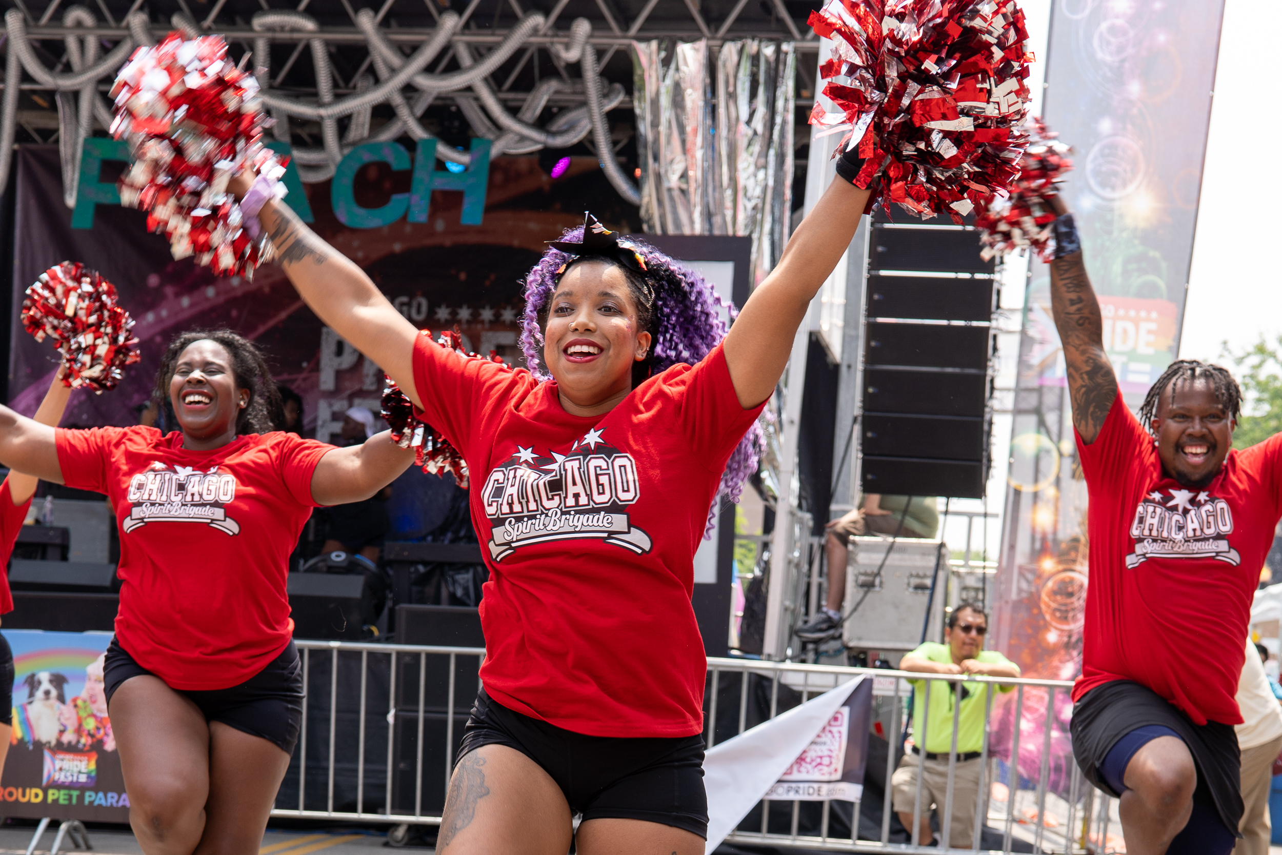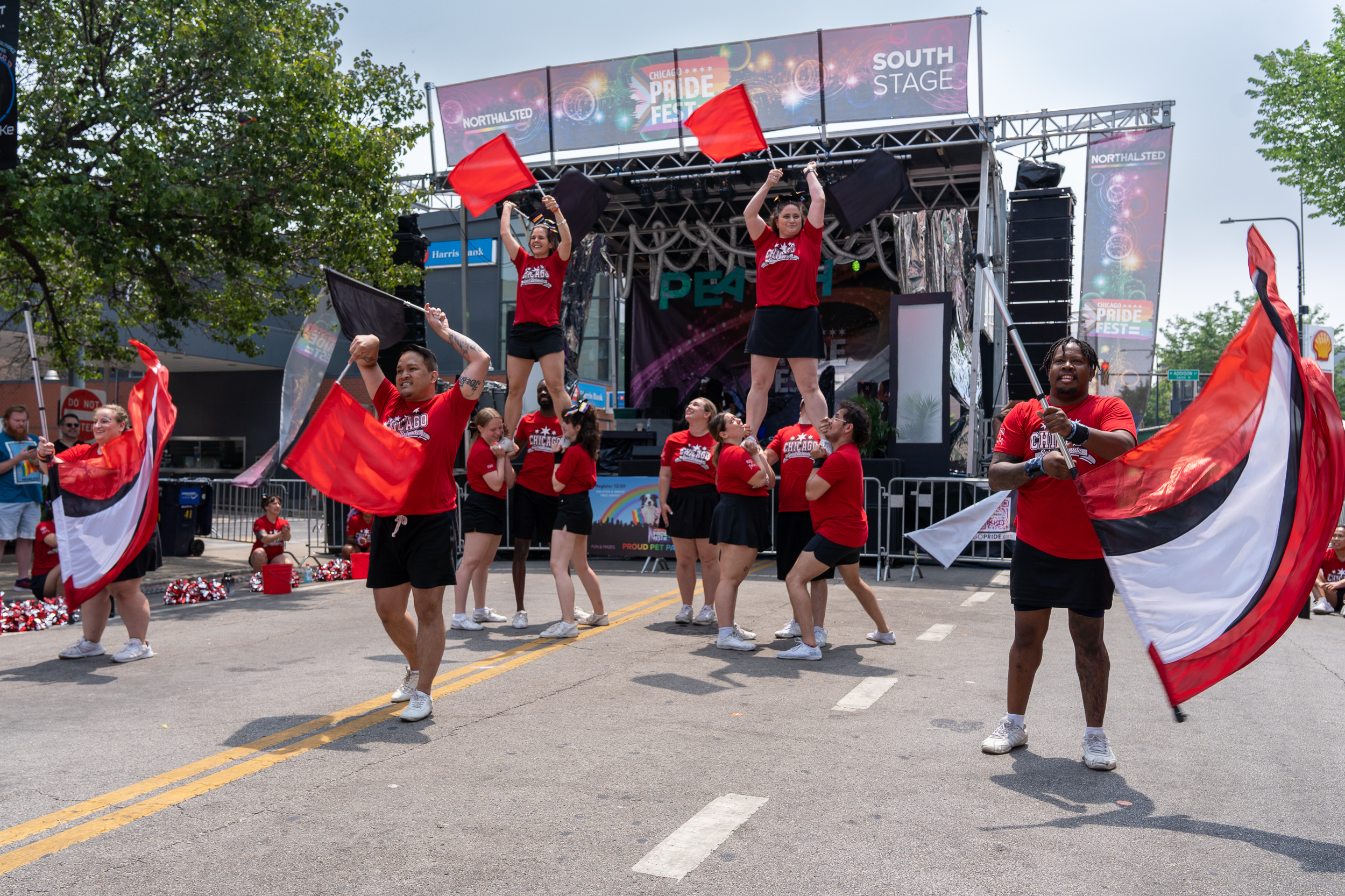 Sunday, June 18, 2023 - Chicago Spirit Brigade performed at Chicago Pride Fest. CSB features over 35 volunteer performers, supporting the community through fundraising events as they cheer, dance and twirl.