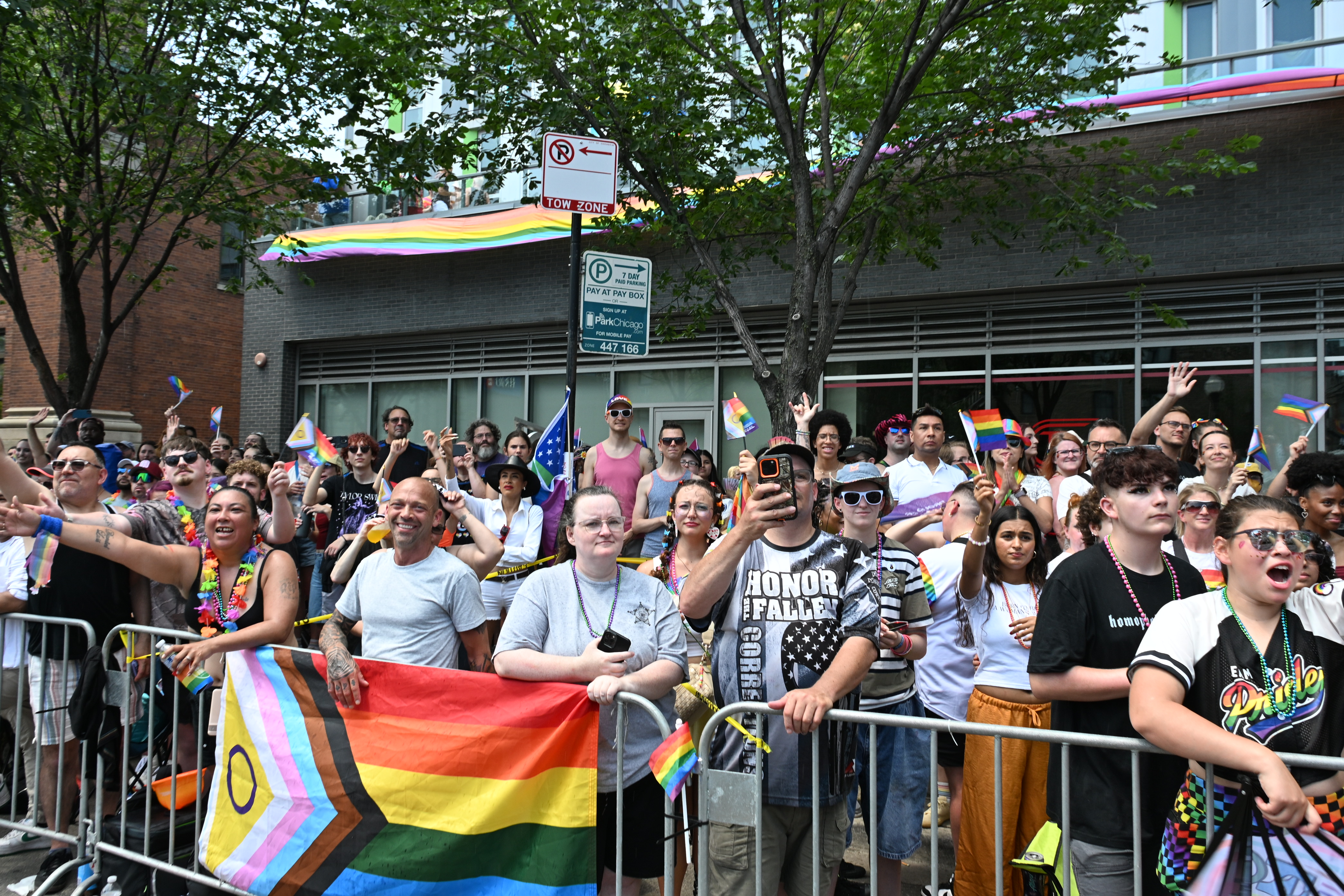 Sunday, June 29, 2025 - Pictures of the crowd watching the parade – On the West side of Halsted from Whole Foods to Roscoe