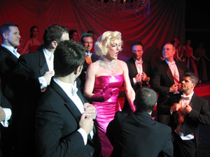 Friday, February 13, 2004 - Fireball Weekend's opening party "Ignition" was held at the historic and highly stylized Aragon Ballroom. DJ Tracy Young with lead-in by Greg Drescher. This was Circuit Mom's Final Farewell Fireball Stage Performance!