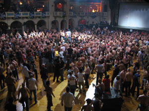 Friday, February 13, 2004 - Fireball Weekend's opening party "Ignition" was held at the historic and highly stylized Aragon Ballroom. DJ Tracy Young with lead-in by Greg Drescher. This was Circuit Mom's Final Farewell Fireball Stage Performance!