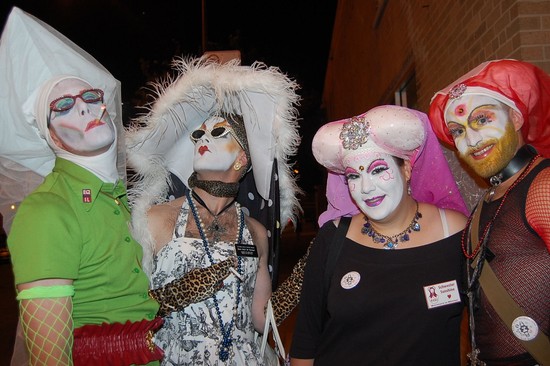 Monday, July 27, 2009 - The Sisters of Perpetual Indulgence is a leading-edge Order of queer nuns. Since their first appearance in San Francisco on Easter Sunday, 1979, the Sisters have devoted ourselves to community service, ministry and outreach to those on the edges, and to promoting human rights, respect for diversity and spiritual enlightenment. We belive all people have a right to express their unique joy and beauty and we use humor and irreverent wit to expose the forces of bigotry, complacency and guilt that chain the human spirit.