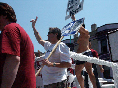 Sunday, June 27, 2004 - ChicagoPride.com was excited to have a float entry in the Parade. Joining our wonderful contributors on the float was Michelle Leigh of Fox News and DreX of 103.5 Kiss-FM. Indulge us as we share some photos from and of our float!
