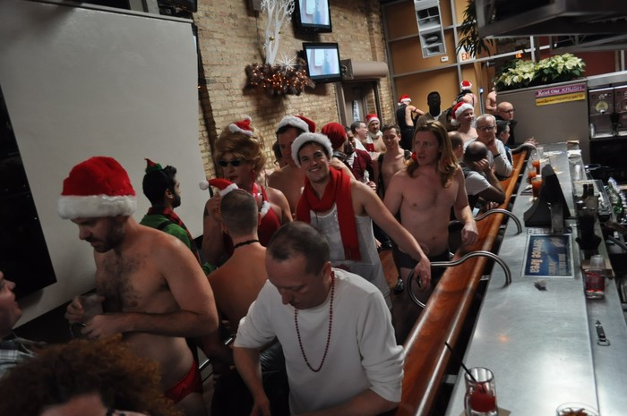 Saturday, December 1, 2012 - Hundreds of people packed Sidetrack for the second annual Most Fabulous Santa Speedo Run. About 150 runners clad in speedos and Santa hats ran 1-mile through Boystown. Money raised was for Vital Bridges, a program of Heartland Health Outreach. (Read more)