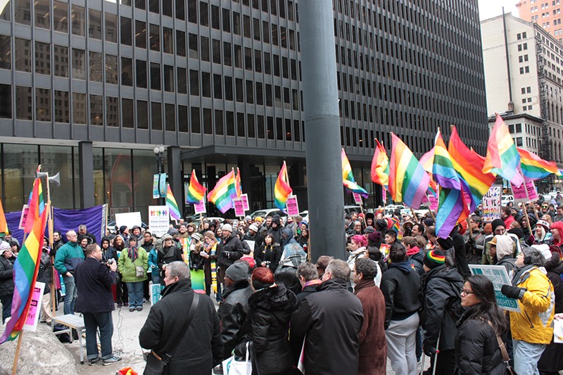 Monday, March 25, 2013 - Gay rights activists and supporters of marriage equality took to the streets for rallies in over 160 cities in all 50 states, including Chicago, where the rally and marches kicked off downtown at the Federal Plaza. News coverage at http://gopride.com/Z823