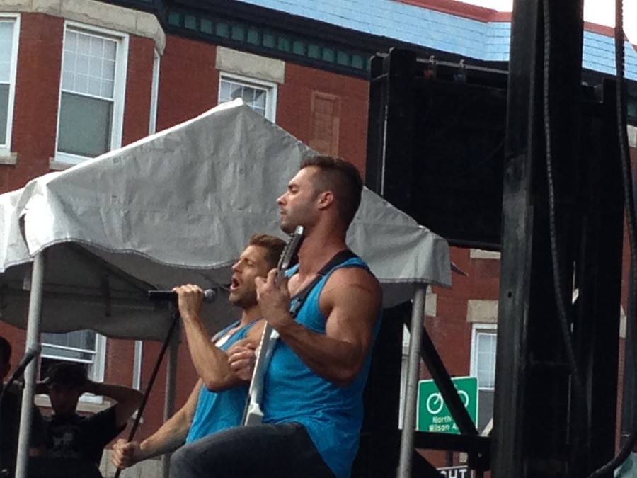 Sunday, August 11, 2013 - "Amazing Race" season 21 stars Jaymes Vaughan and James Davis perform at Chicago's 2013 Northalsted Market Days.