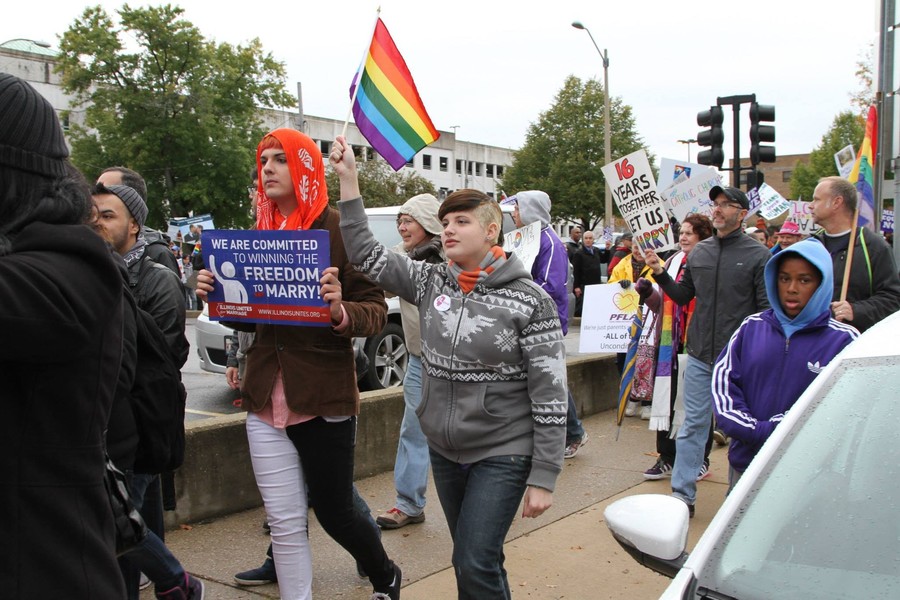 Tuesday, October 22, 2013 - Thousands of marriage rights advocates and allies braved the cold rain to rally outside the Illinois state Capitol as part of the March on Springfield for Marriage Equality. Read more, plus full video of the march and rally.