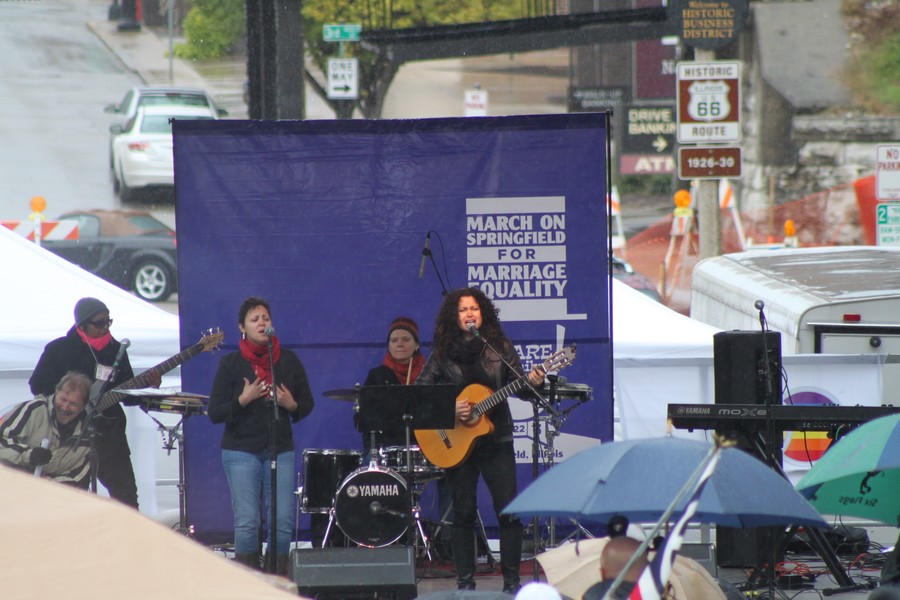 Tuesday, October 22, 2013 - Thousands of marriage rights advocates and allies braved the cold rain to rally outside the Illinois state Capitol as part of the March on Springfield for Marriage Equality. Read more, plus full video of the march and rally.