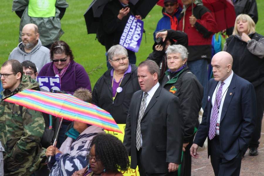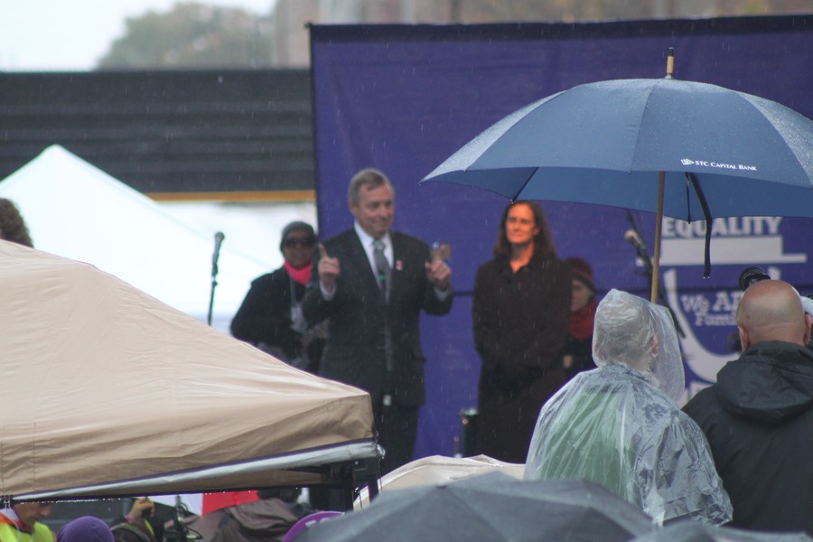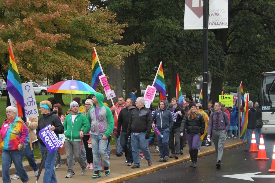 Tuesday, October 22, 2013 - Thousands of marriage rights advocates and allies braved the cold rain to rally outside the Illinois state Capitol as part of the March on Springfield for Marriage Equality. Read more, plus full video of the march and rally.