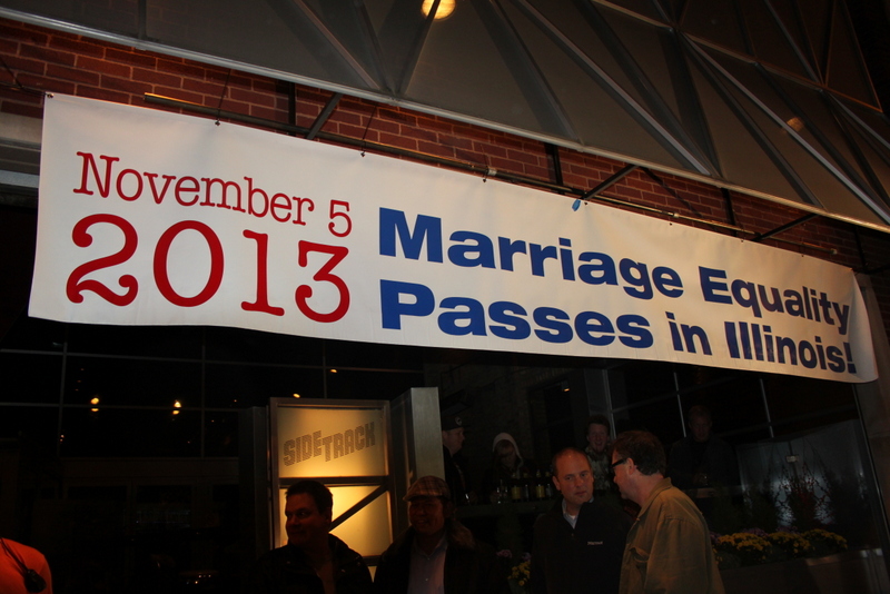 Tuesday, November 5, 2013 - The excitement over passage of Senate Bill 10 quickly spread in Chicago's Boystown neighborhood, where Sidetrack hosted a community celebration on Tuesday night. Nearly 300 people packed the popular bar, which is co-owned by long-time gay rights activist Art Johnston. Mayor Rahm Emanuel, a strong advocate of marriage equality, was also on hand for the celebration.