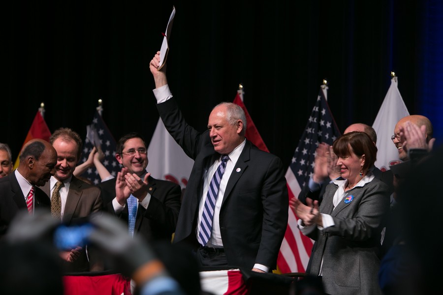 Wednesday, November 20, 2013 - Joined by numerous elected officials, advocates and members of the public, Illinois Gov. Pat Quinn signed Senate Bill 10, The Religious Freedom and Marriage Fairness Act, during an historic signing ceremony at the UIC Forum in Chicago.