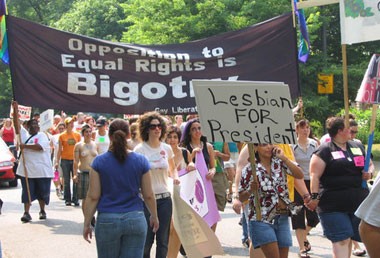 Saturday, June 25, 2005 - Thousands gathered to lend their feet and voices to the popular Dyke March. Photos courtesy DykeDiva.com and Meredith Weiss.