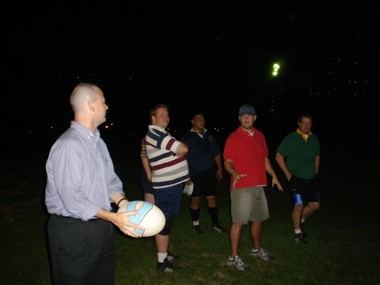 Friday, October 7, 2005 - Jason joins the Chicago Dragons gay rugby team at practice.