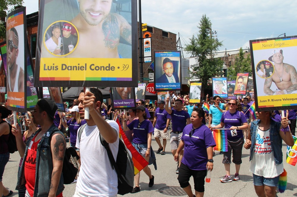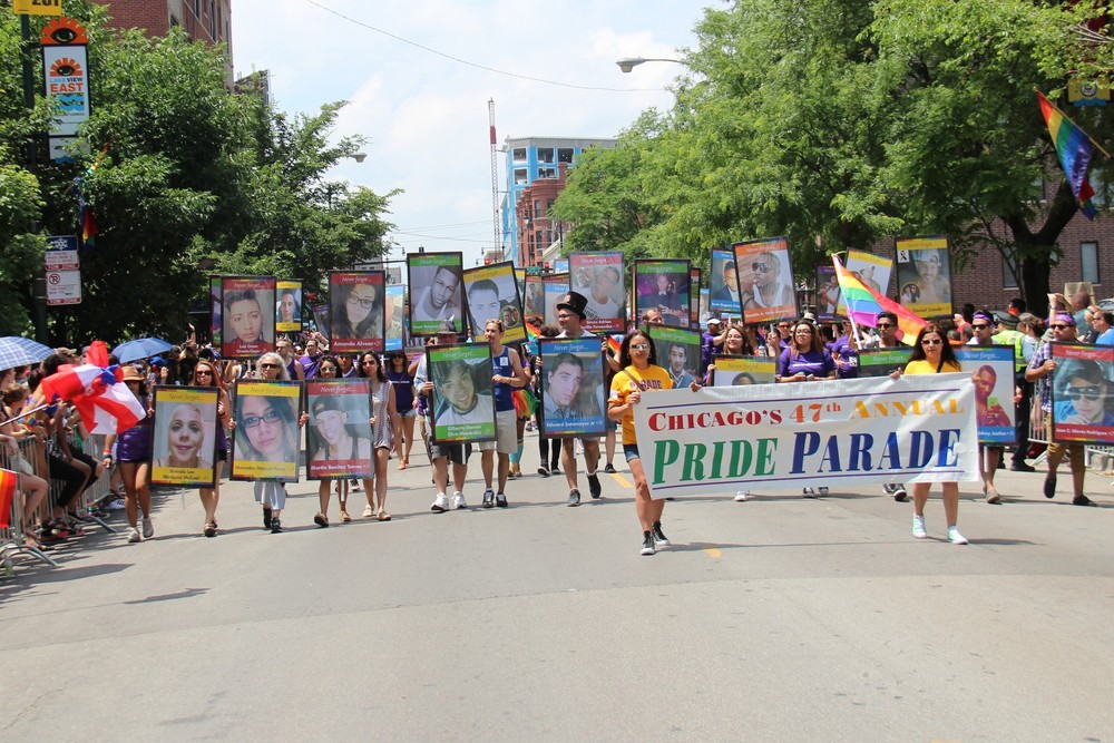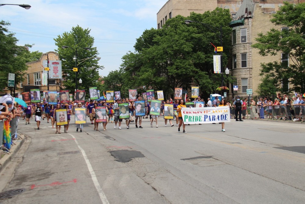 Sunday, June 26, 2016 - The 47th annual Chicago Pride Parade began with a tribute to the 49 killed at Pulse nightclub, sponsored by Windy City Times and ChicagoPride.com. Images printed by Topweb, Theresa and Mercedes Volpe-Santos designed with Brad Delaney from One Million Kids for Equality.