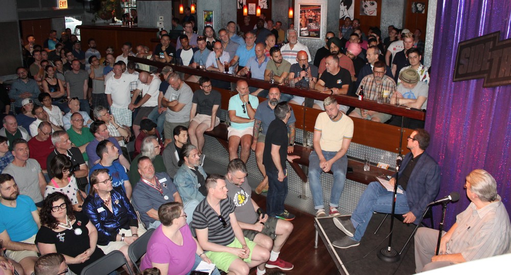 Wednesday, June 5, 2019 - About 250 attended a moving, informative intimate conversation with Tree Sequoia, who was a bartender at the Stonewall Inn that night 50 years ago when the New York bar was raided by a police vice squad, again. He spoke Wednesday, June 5 at Sidetrack, and presented the night before at Sidetrack’s OUTSpoken monthly series.