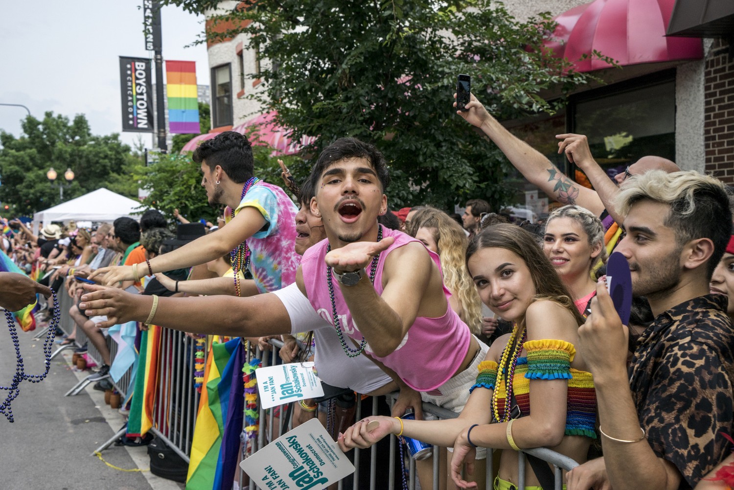 Thousands descended on Chicago's Uptown and Lakeview neighborhoods Sunday, June 30 for the 50th annual Chicago Pride Parade, a culmination of the city's Pride Month festivities. The 2019 parade was cut short because of strong storms. A majority of the 160 entries made the parade route, though 39 entries, including nine floats, did not make the parade.