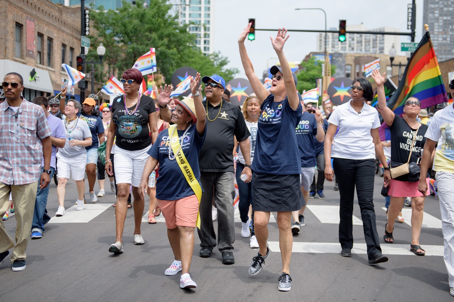 Thousands descended on Chicago's Uptown and Lakeview neighborhoods Sunday, June 30 for the 50th annual Chicago Pride Parade, a culmination of the city's Pride Month festivities. The 2019 parade was cut short because of strong storms. A majority of the 160 entries made the parade route, though 39 entries, including nine floats, did not make the parade.