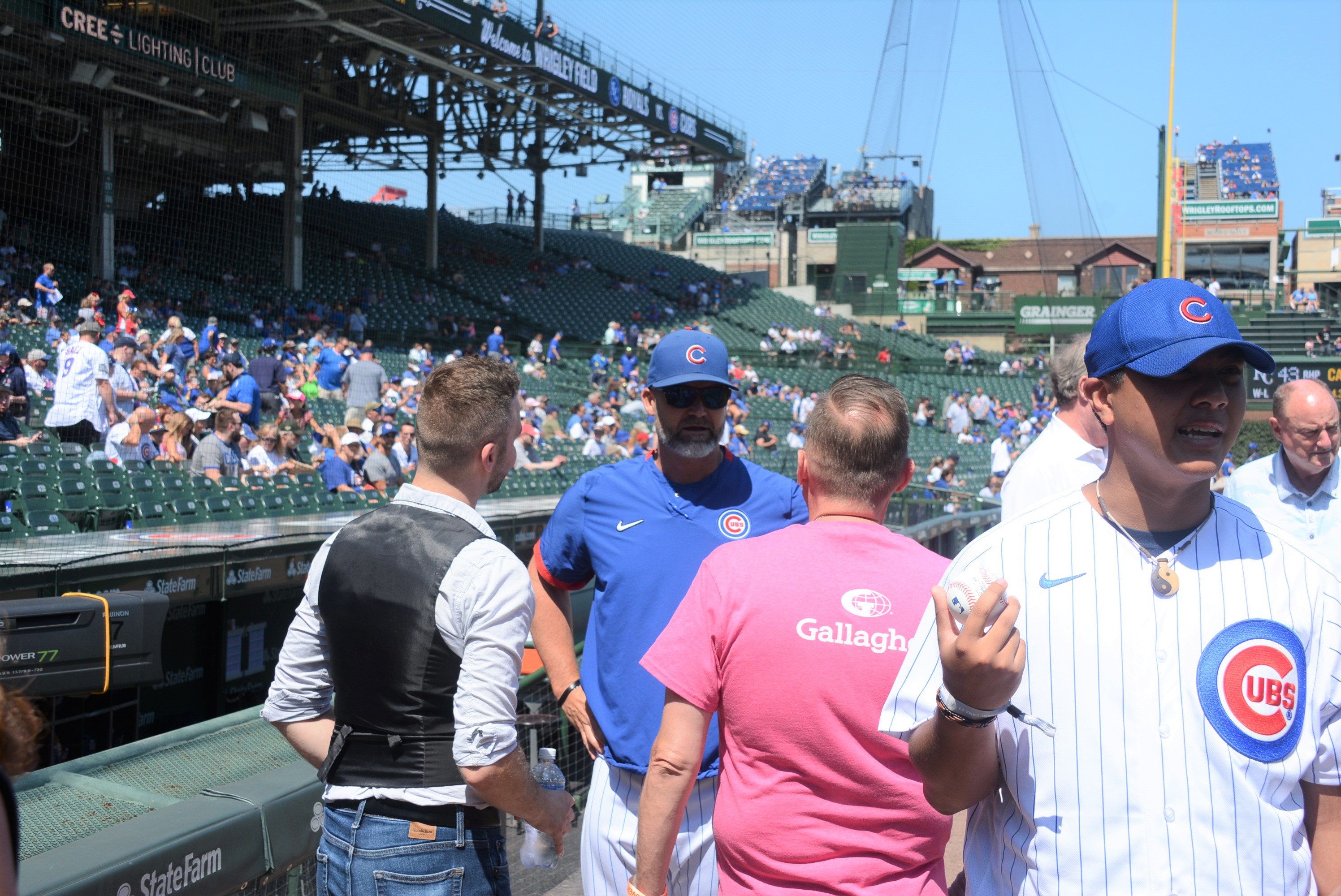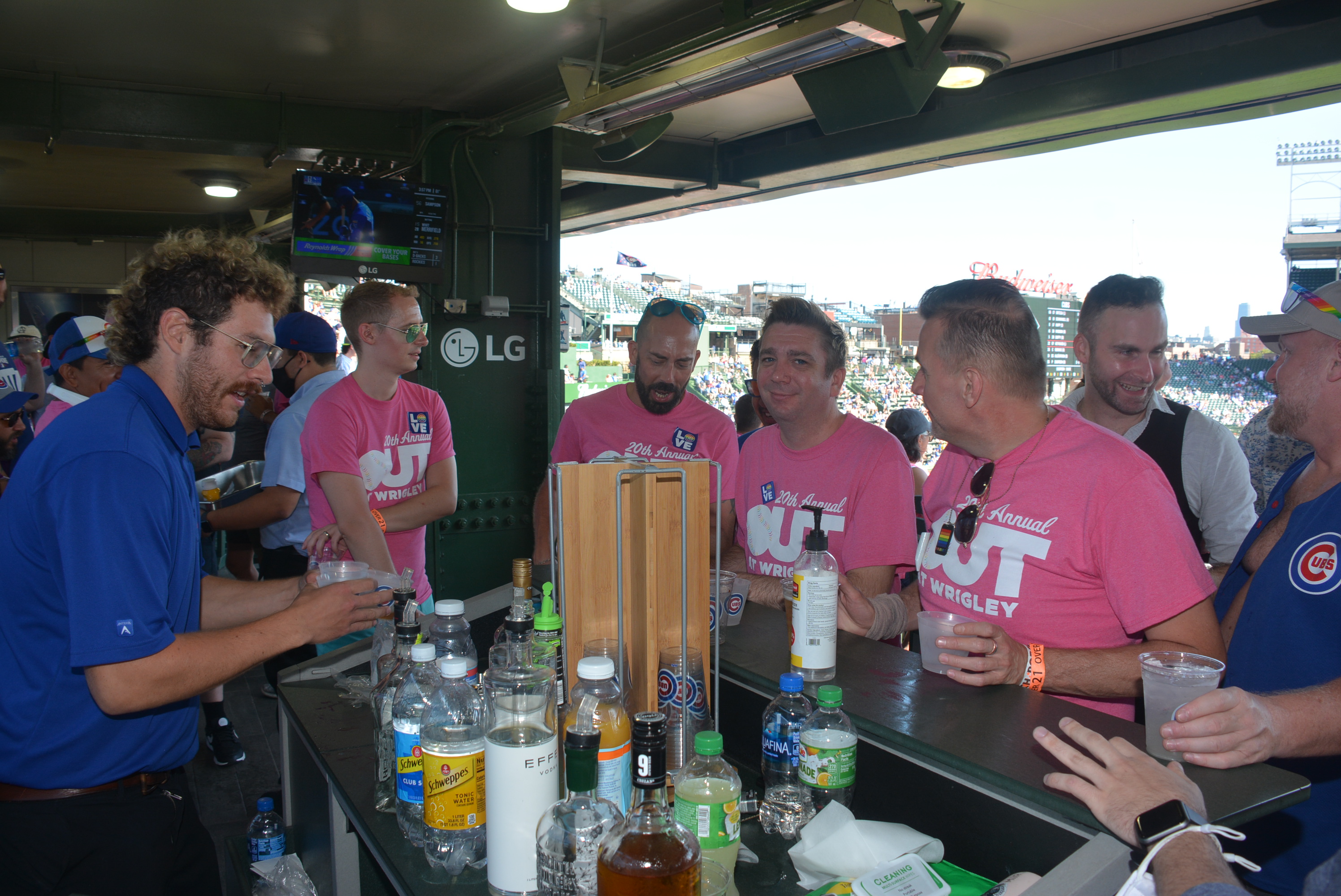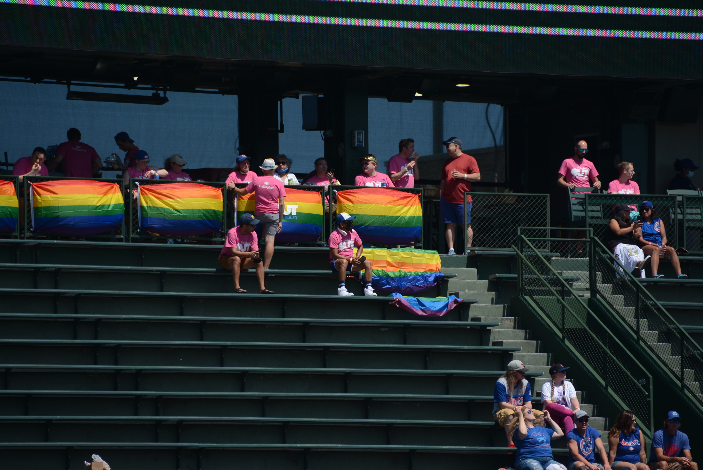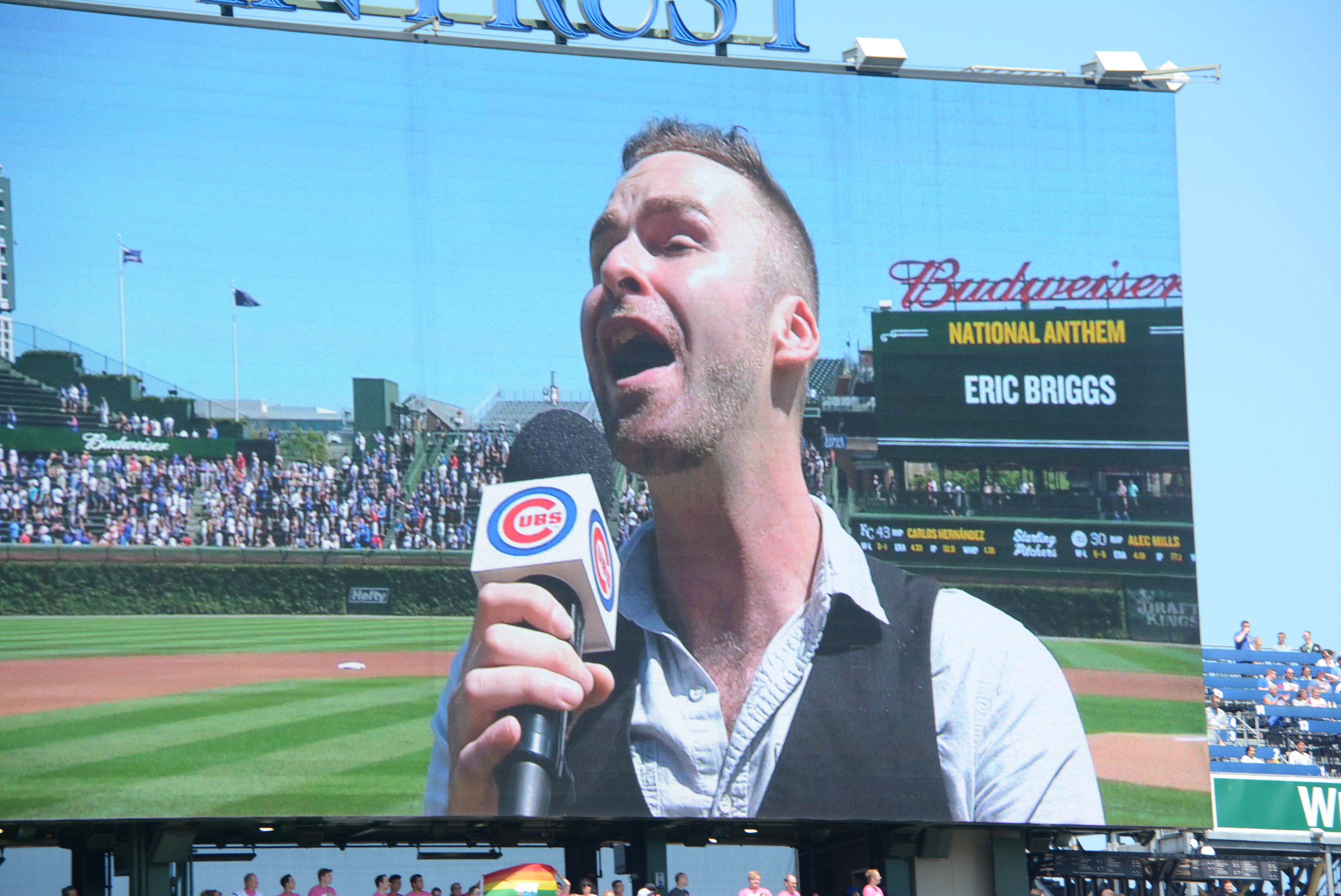 Sunday, August 22, 2021 - 20th Anniversary of Out at Wrigley. OAW founder Bill Gubrud throws out the first pitch and Eric Briggs sings God Bless America and The Star Spangled Banner as part of "gay days" at the Chicago Cubs / Wrigley Field.