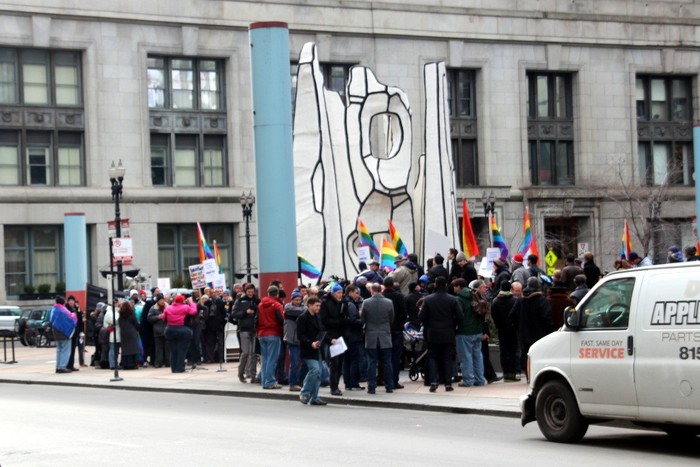 Saturday, January 5, 2013 - Gay rights activists, allies and politicians gathered outside the Thompson Center in downtown Chicago Saturday to show support for Illinois' pending gay marriage legislation. (Read full story)