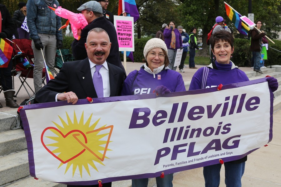 Tuesday, October 22, 2013 - Thousands of marriage rights advocates and allies braved the cold rain to rally outside the Illinois state Capitol as part of the March on Springfield for Marriage Equality. Read more, plus full video of the march and rally.